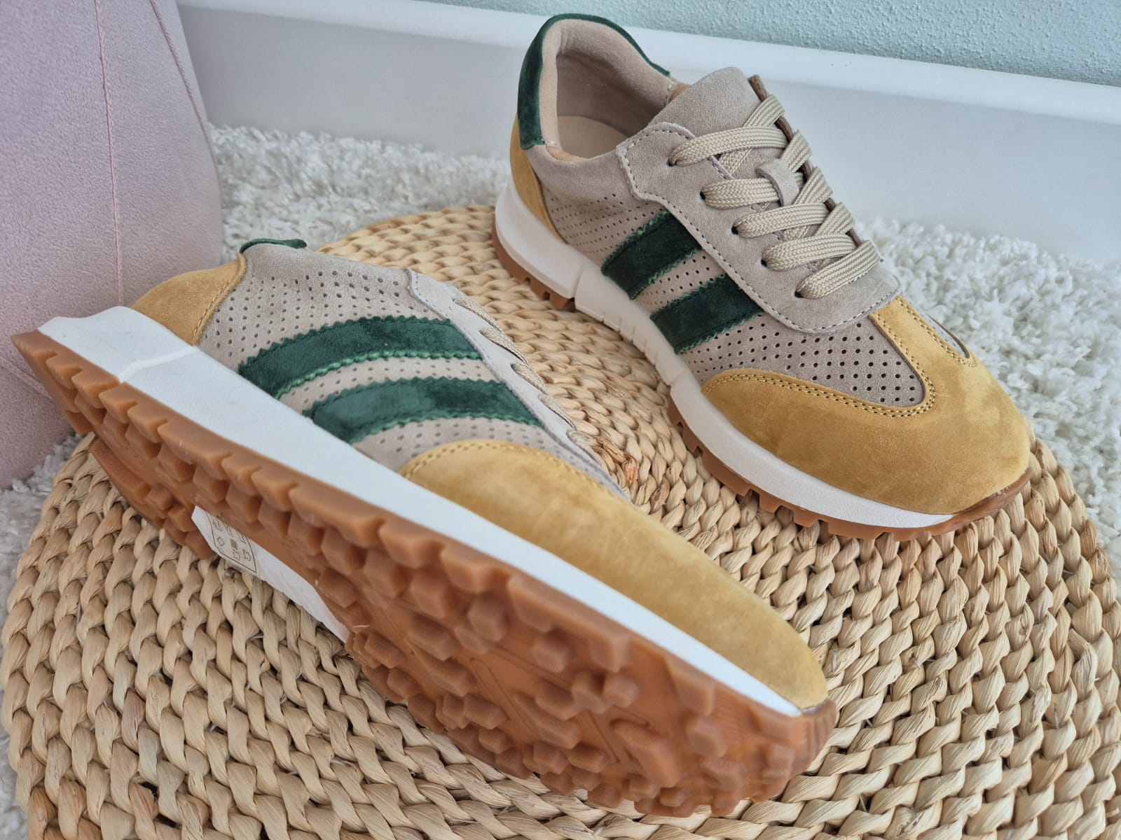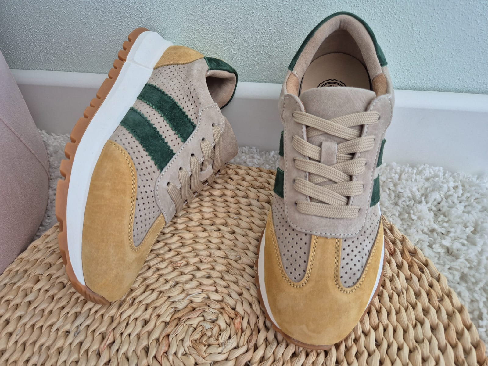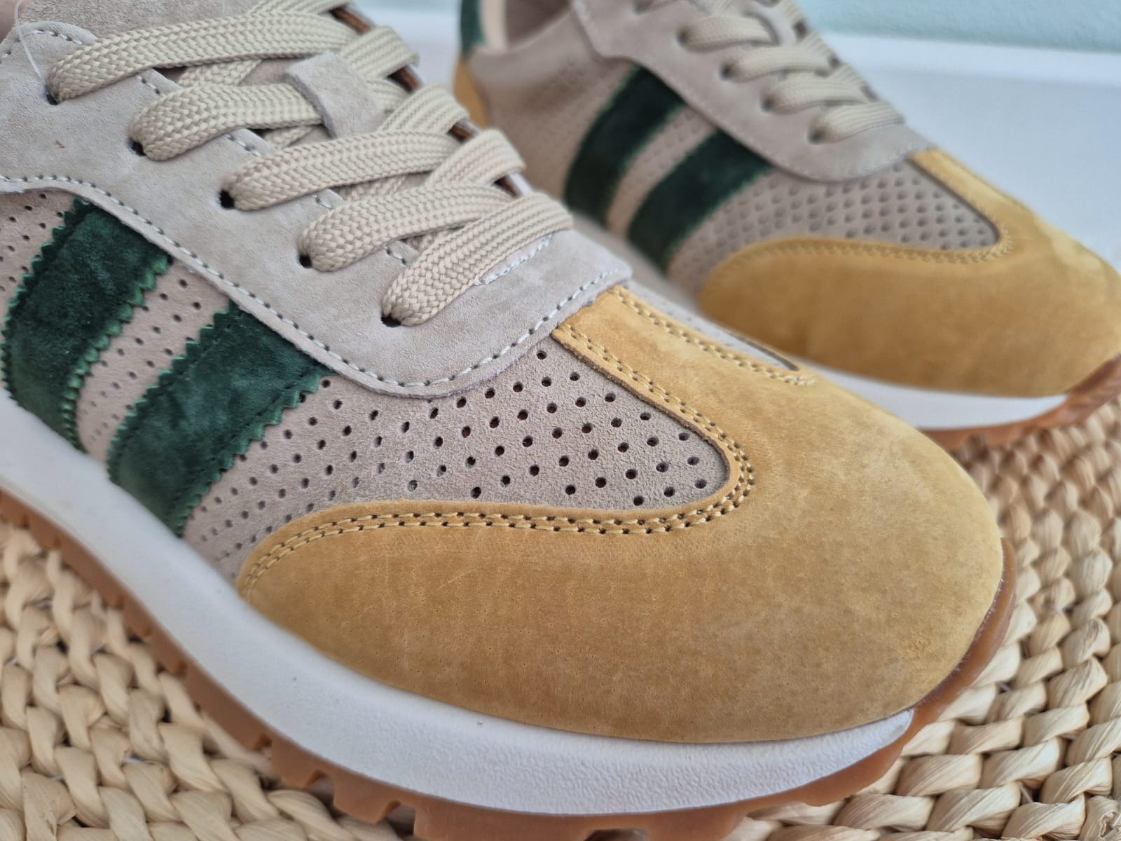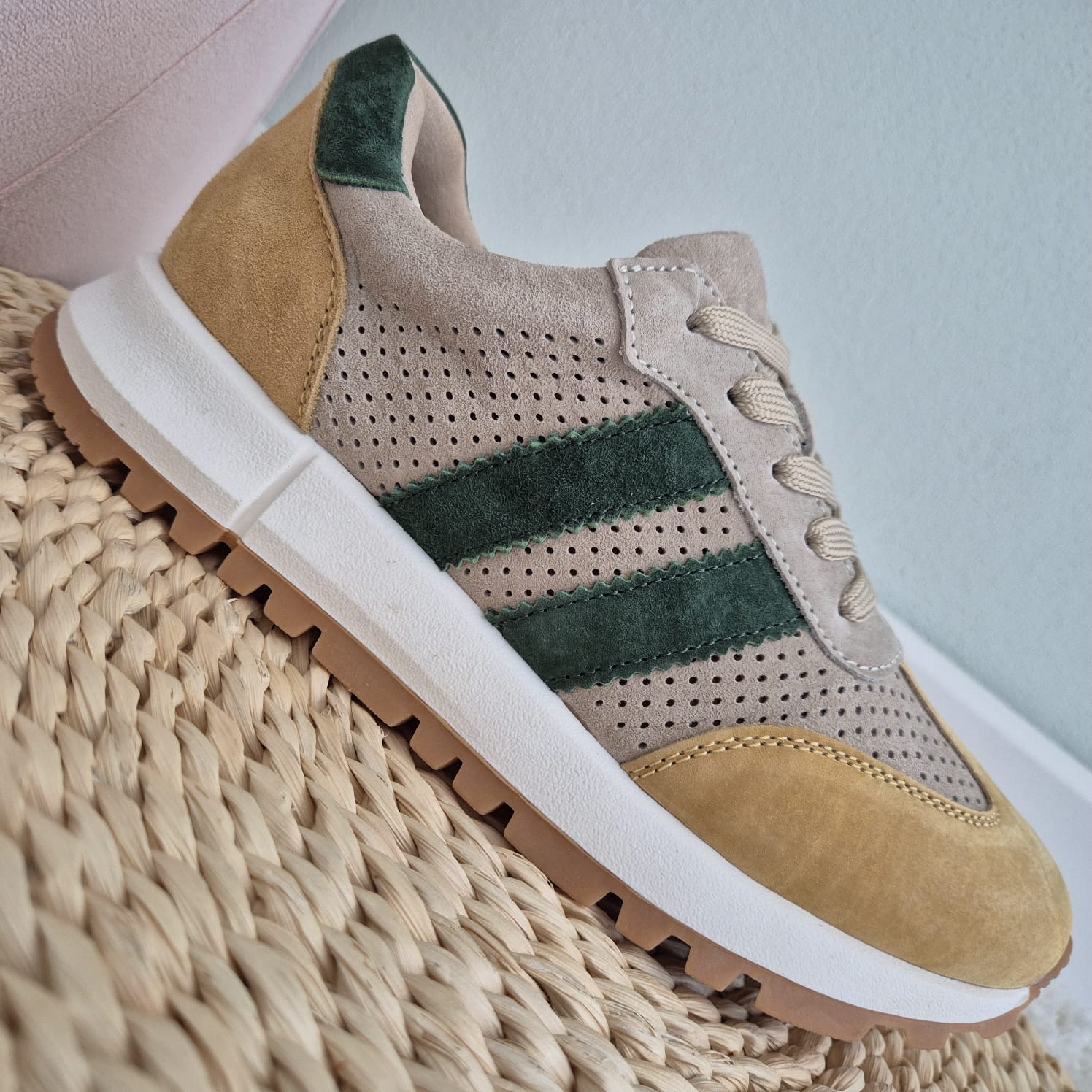 - Kolor: beżowy z dodatkiem zieleni