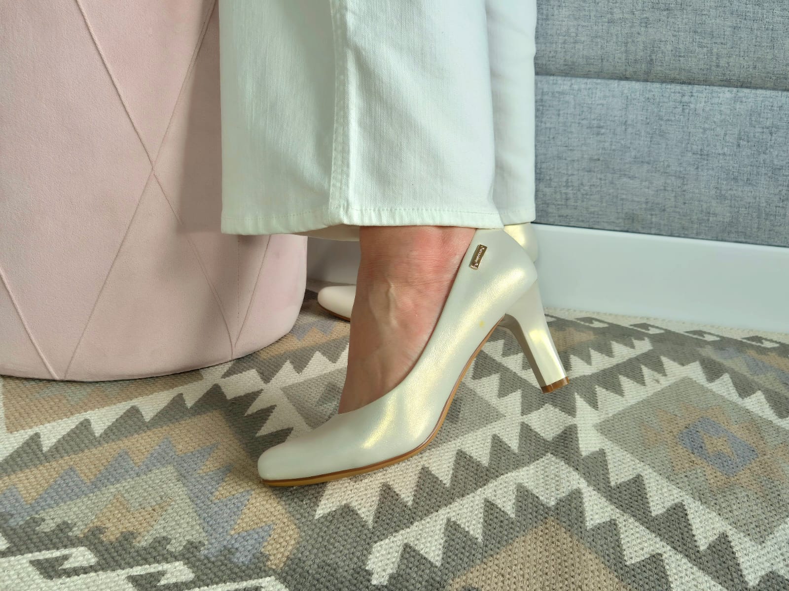 Delikatny blask, który przyciąga spojrzenia, i forma, która podkreśla kobiecą sylwetkę – te perłowe czółenka na smukłym słupku to połączenie subtelnej elegancji z nowoczesnym wyczuciem stylu. Ich lekko połyskujące wykończenie pięknie odbija światło, dodając stylizacji wyjątkowego charakteru, a stabilny, choć smuklejszy obcas zapewnia komfort noszenia przez wiele godzin. To idealny wybór na wyjątkowe okazje, kiedy liczy się każdy detal – od pierwszego kroku aż po ostatnie wrażenie.