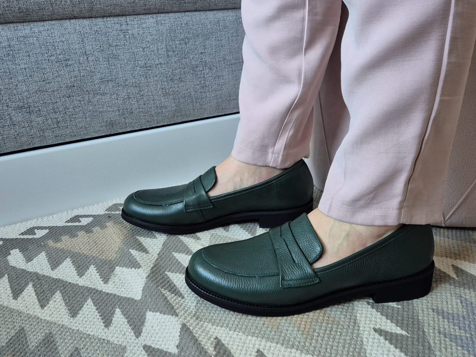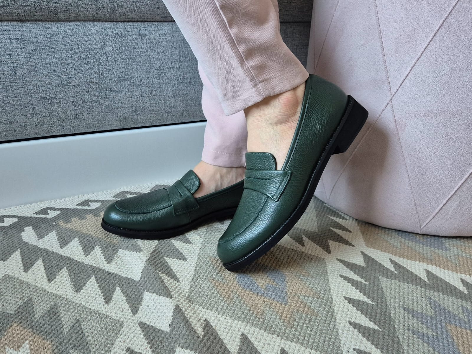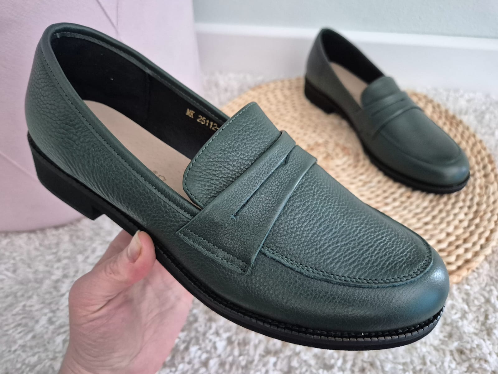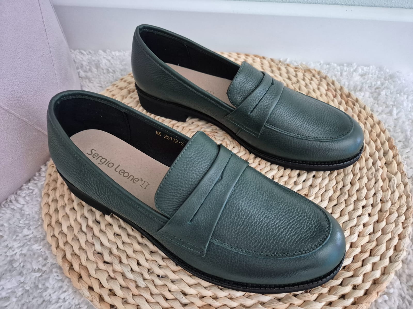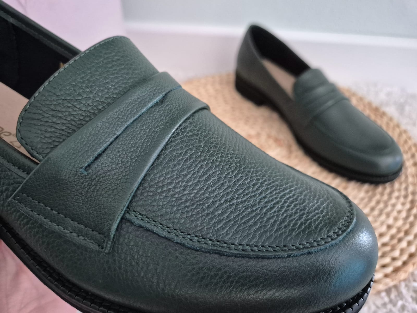 Mokasyny Damskie Półbuty Skórzane Miękkie Zielone WANDA