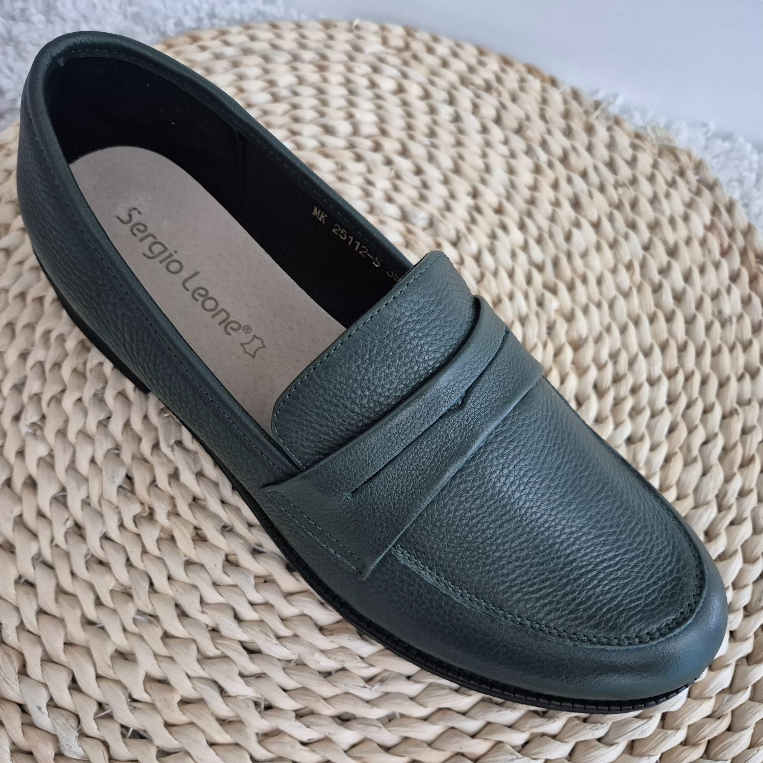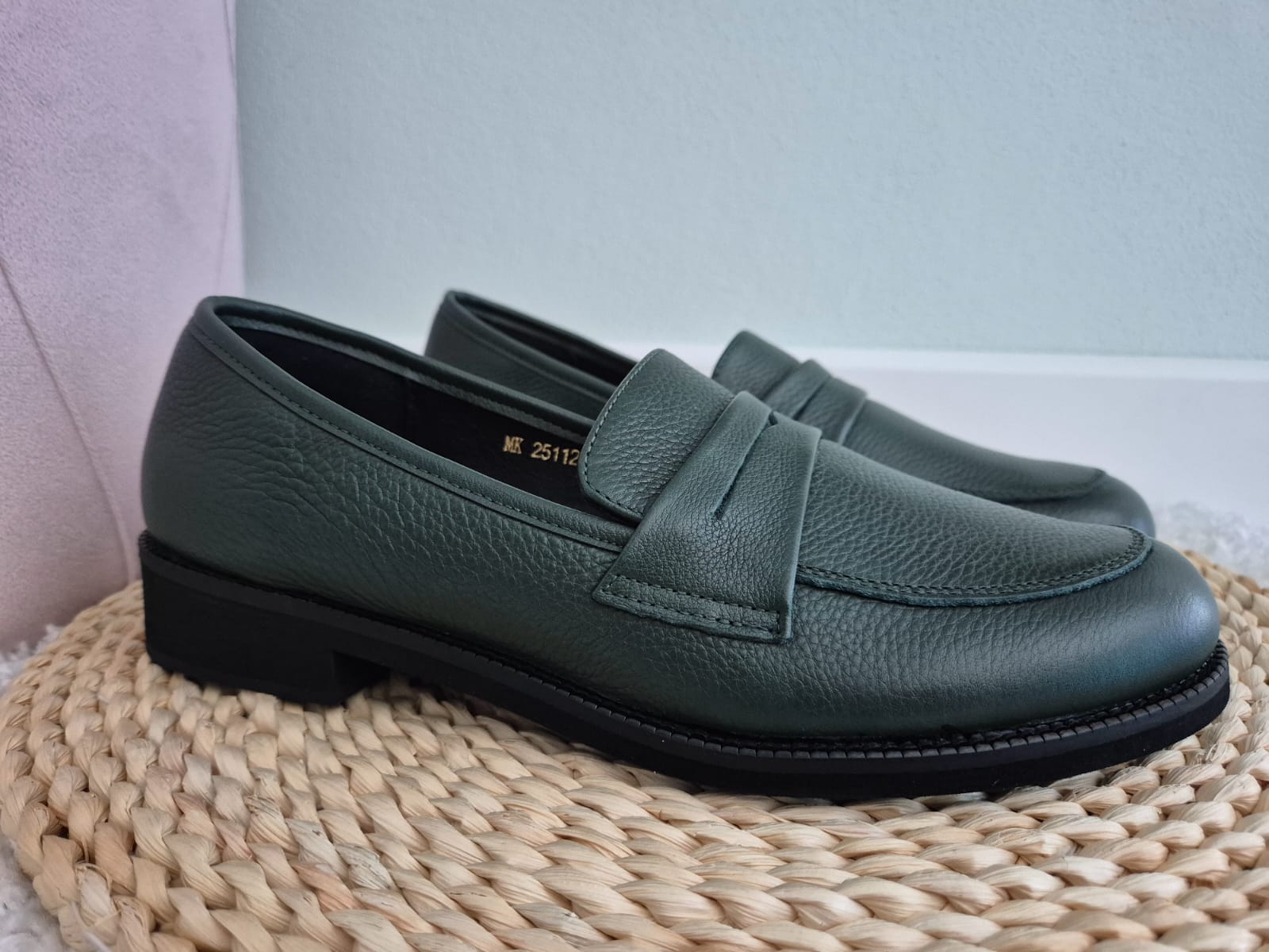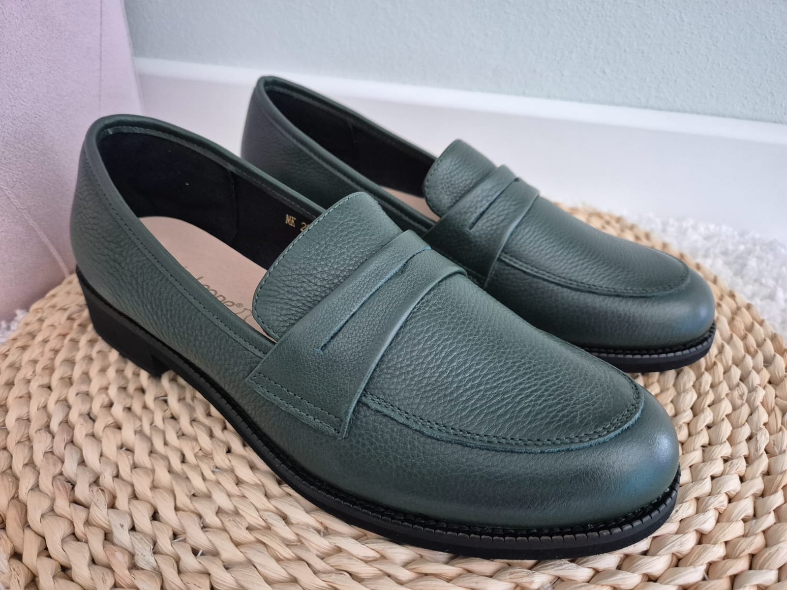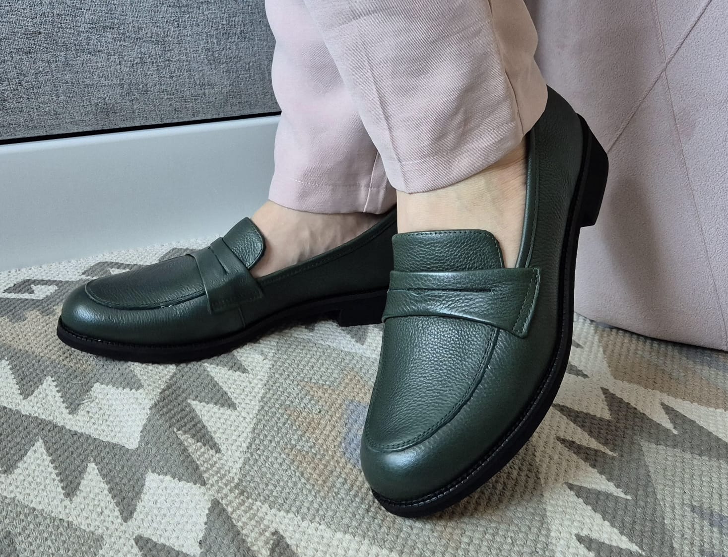 Mokasyny Damskie Półbuty Skórzane Miękkie Zielone WANDA