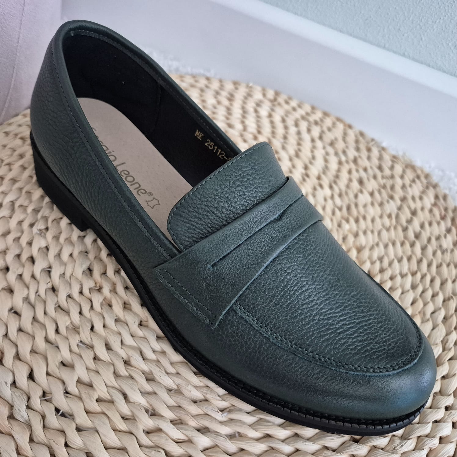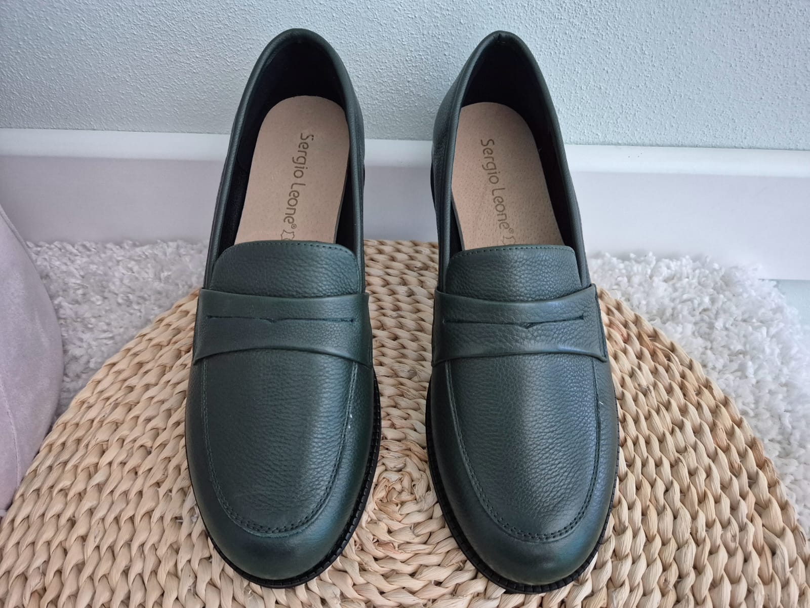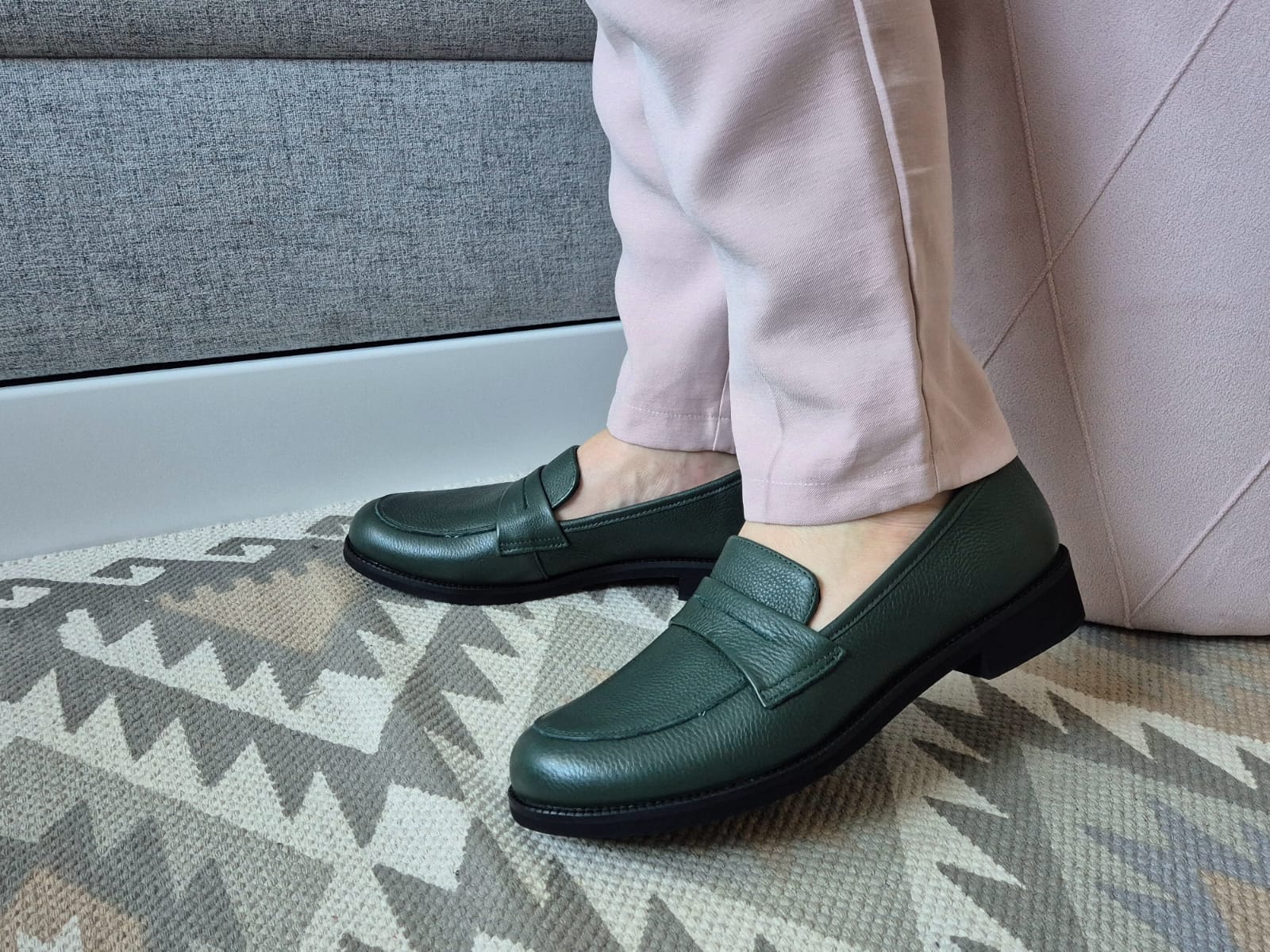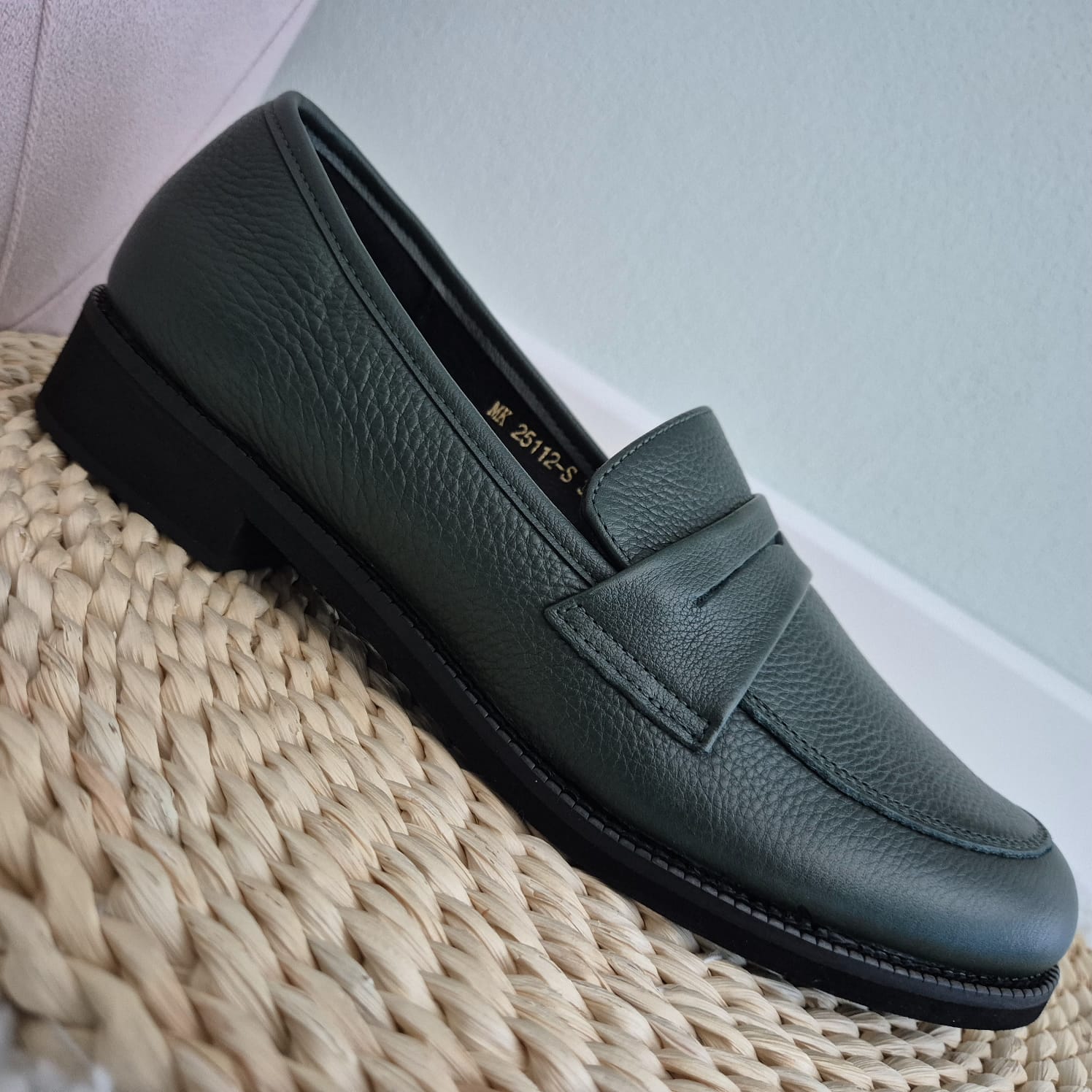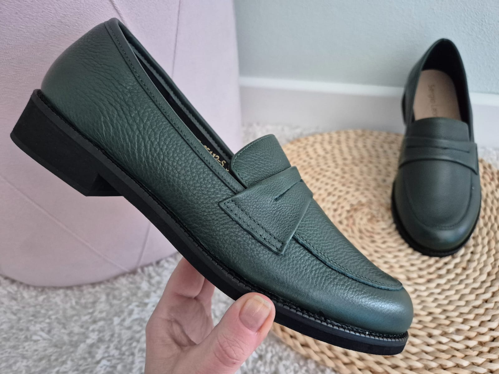 Mokasyny Damskie Półbuty Skórzane Miękkie Zielone WANDA