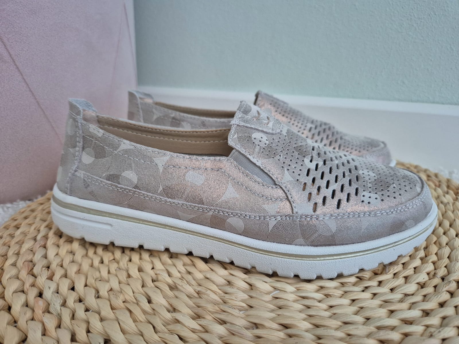 Obuwie zostało wykonane ze skóry naturalnej, która jest miękka i dobrze dopasowuje się do stopy. Model ten jest bardzo lekki, nie poczujesz, że masz go na stopach. Skórzana profilowana wkładka zapewni komfort i dobre ułożenie stopy w bucie. Obuwie wsuwane - z łatwością i szybkością można je założyć i zdjąć.